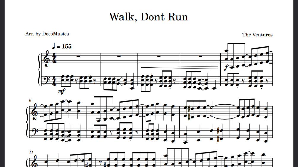 Walk, Don't Run by The Ventures, transcribed for piano as accurately as possible.